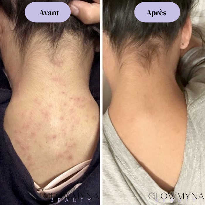 J’avais toujours des boutons dans la nuque, c’était inconfortable et je n’osais pas attacher mes cheveux. Le GlowWave a apaisé ma peau et tout a disparu, je revis.