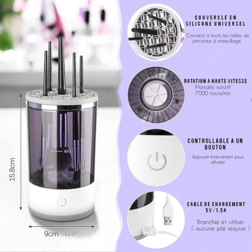 Le nettoyant électrique pour pinceaux de maquillage est facile à utiliser, rechargeable partout et idéal pour un nettoyage rapide et efficace.